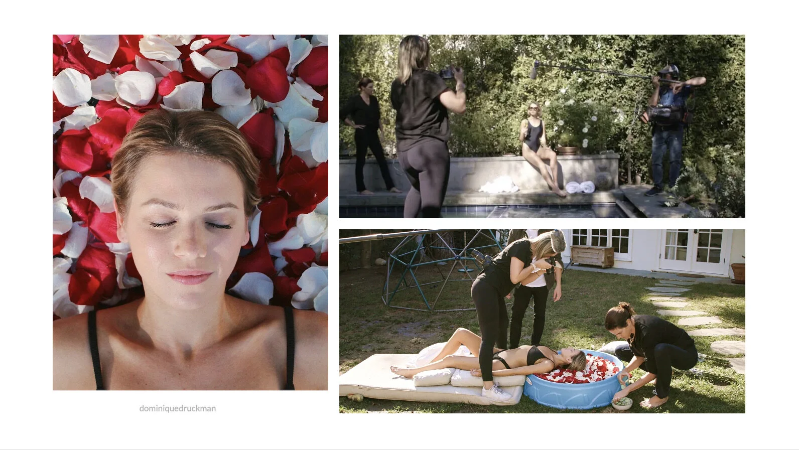 The day at the spa—a photograph in a backyard paddling pool. A luxurious holiday at The Beverly Hills Hotel— a photograph in the documentary director’s backyard.